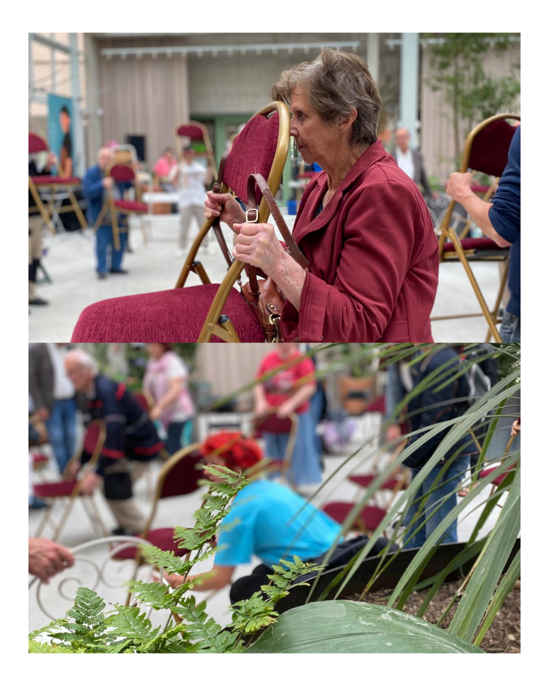C’est un dispositif silencieux de théâtre physique avec chaises qui se joue dans l’espace public ou en intérieur.